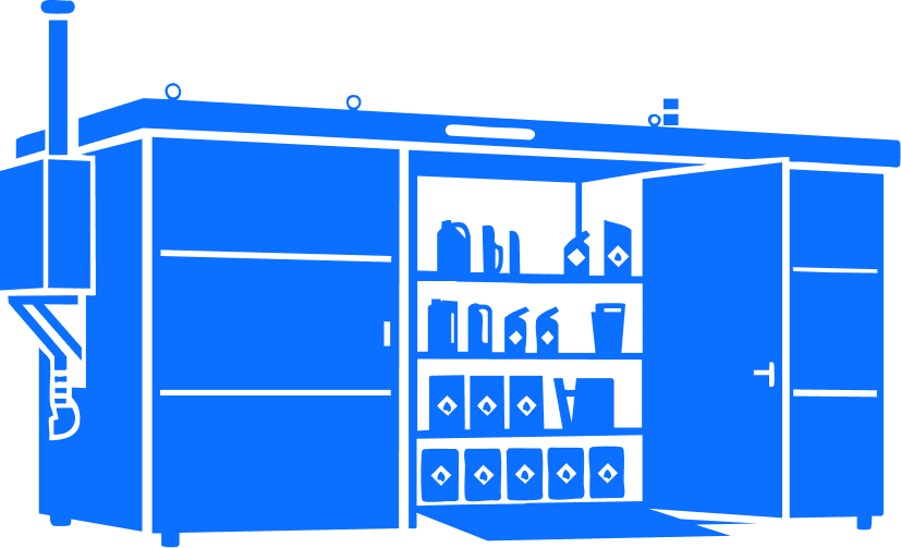 To idealne rozwiązanie, gdy potrzebujesz wydzielonego pomieszczenia do przechowywania lub pracy z małymi pojemnikami i substancjami niebezpiecznymi. Wnętrze oraz konstrukcję takiego kontenera projektujemy indywidualnie, z pełnym uwzględnieniem obowiązujących przepisów BHP, ochrony przeciwpożarowej oraz wymagań ATEX.